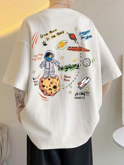 圆领建筑印花青少年男童时尚夏季短袖运动T恤,舒适百搭,适合夏季和春季 - 白色 - 查看 5