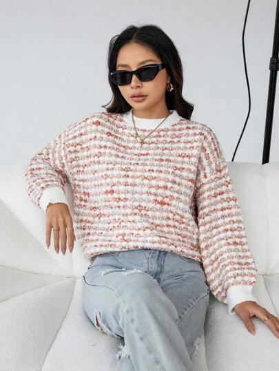 GENKIRA 圆领落肩针织套头衫秋冬毛衣 - 彩色 - 查看 5