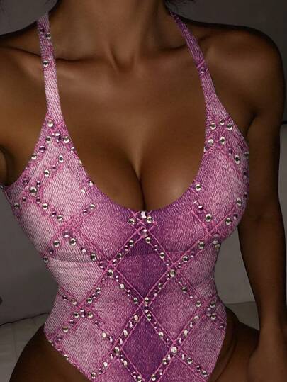 Rovax 女士时尚菱形印花无袖连体衣,夏季 - 彩色 - 查看 1
