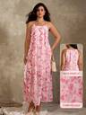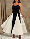 Roveilla 大码V领侧腰系带短袖开衩优雅时尚魅力连衣裙长款女装