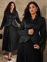 Roveilla 2 件大码套装:黑色立领长袖修身上衣 + 黑色褶皱长裙