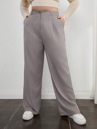RueChic 加大条纹印花阔腿西装裤 - 淺灰色 - 查看 1