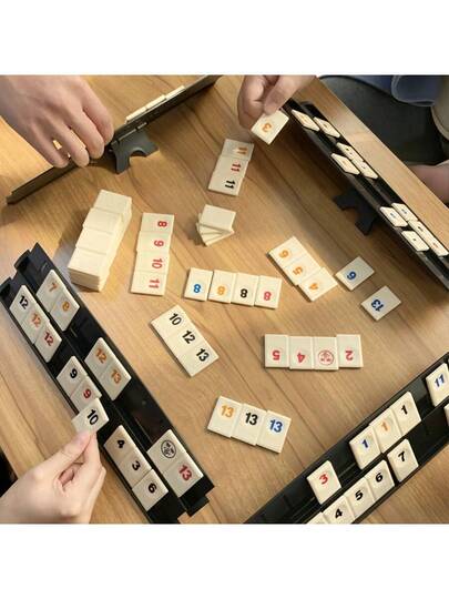 拉米方块游戏套装,含4个支架,106片方块游戏旅行套装及便携包,经典家庭棋盘游戏,成人休闲派对游戏卡牌棋盘游戏玩具 - 彩色 - 查看 1