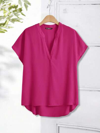Rusticease 大碼缺口領弧形下擺上衣 - 玫紅色 - 查看 1