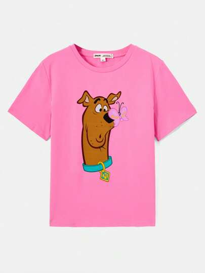 SCOOBY-DOO X SHEIN Tween女孩卡通和蝴蝶印花t恤 - 粉色 - 查看 1