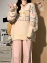 新款女士寬鬆針織毛衣,杏色,短款,大學休閒風格