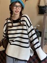女士轻盈透气条纹短袖针织上衣,学院风,夏季