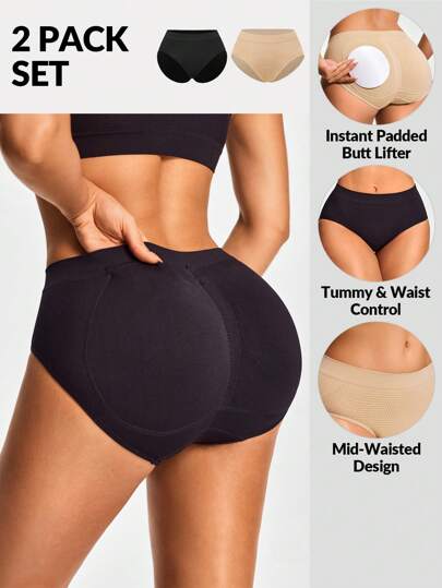 SHAPORA 2 件装 无缝中腰提臀加厚三角裤塑身裤 收腹束腰 - 彩色 - 查看 2