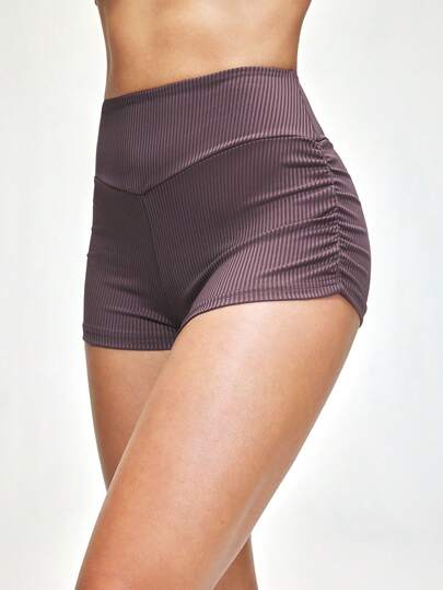 SHAPORA 女士高腰褶皱休闲睡衣短裤 - 咖啡棕 - 查看 1
