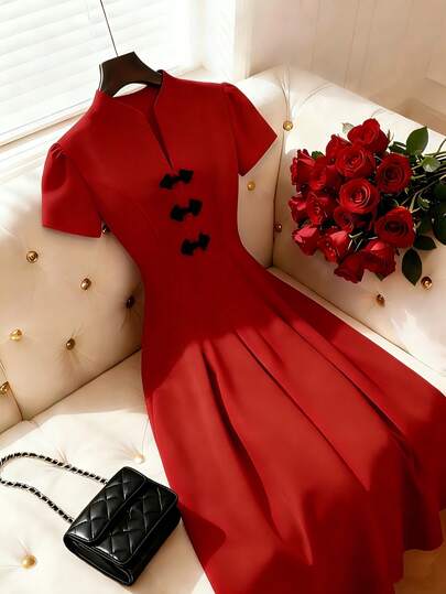Review: 優雅鈕扣收腰長連衣裙