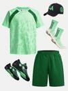 SHEIN 2 件套青少年男童休闲运动图案面料圆领短袖上衣和短裤运动套装,适合通勤、上学、日常休闲装、运动、春夏、跑步、篮球、户外