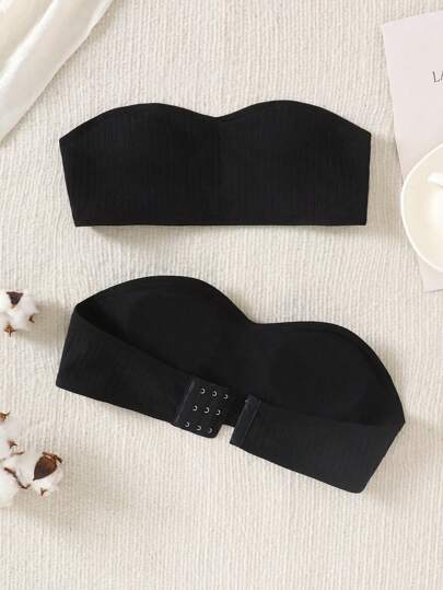 SHEIN 2 件青少年女孩舒适柔软棉质背心套装 - 黑色 - 查看 1