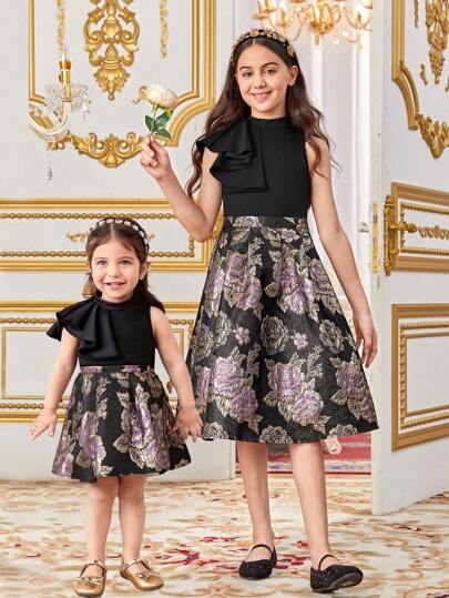SHEIN 2 件装女婴优雅花卉印花上衣和 A 字裙套装,夏季