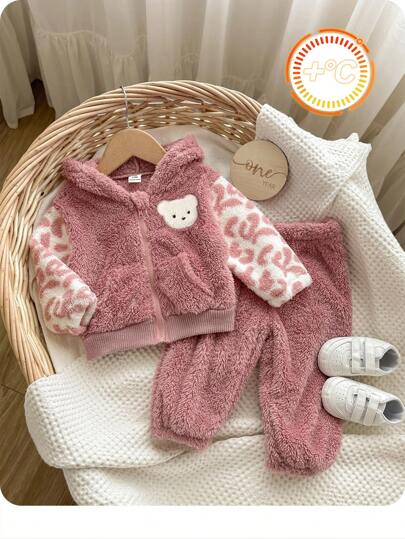 SHEIN 2件套女婴羊毛连帽夹克和裤子套装 - 彩色 - 查看 1
