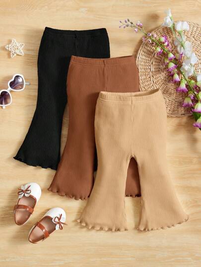 SHEIN Leap Crew 3 件套女婴休闲荷叶边下摆喇叭裤套装 - 彩色 - 查看 3