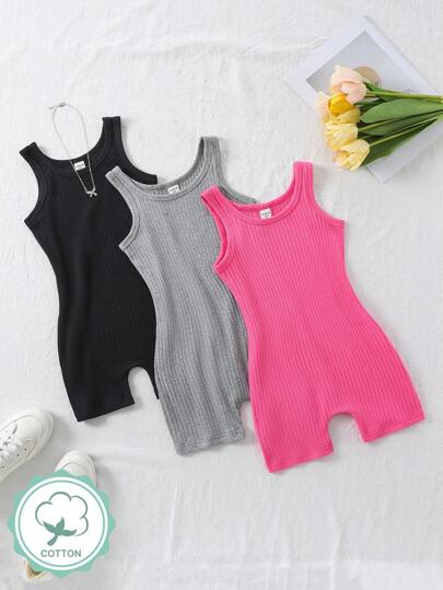SHEIN 3 件套年轻女孩休闲百搭紧身连体裤 - 彩色 - 查看 1