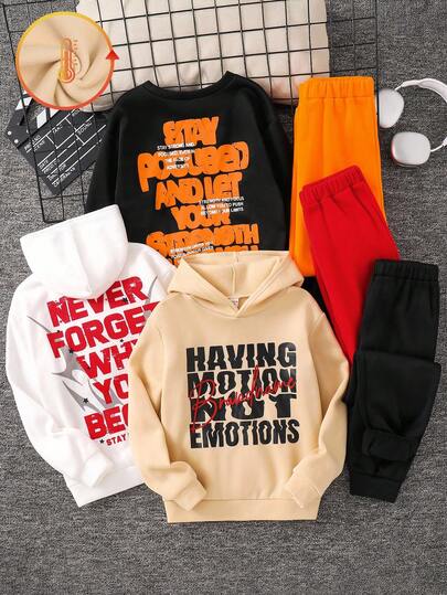 SHEIN 6 件套儿童/青少年男童休闲超大字母图案连帽卫衣和纯色慢跑裤 2 件套,3 种款式,买 1 送 2,适合通勤、上学、休闲、旅行、运动、春夏秋冬