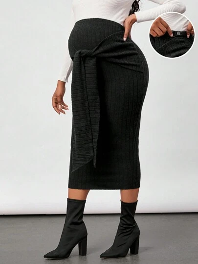 SHEIN 可調節腰帶孕婦裙 - 黑色 - 查看 1