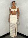 SHEIN BAE 女士白色无袖荷叶边高开叉裹身裙,露肩露背性感伴娘礼服