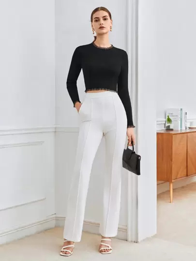 BizChic 蕾絲拼接短款毛衣 - 黑色 - 查看 1