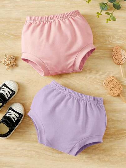 SHEIN 男嬰2入組素色彈性腰帶短褲 - 彩色 - 查看 1