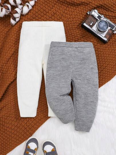 SHEIN 男嬰2入組素色條紋針織長褲 - 彩色 - 查看 1
