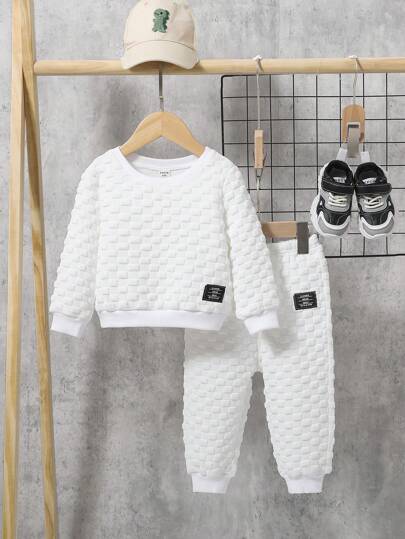 SHEIN 男嬰字母補丁細節套頭衫和運動褲 - 白色 - 查看 1