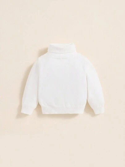 SHEIN 男嬰純色高領毛衣 - 白色 - 查看 1