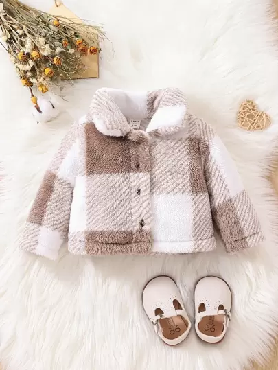 SHEIN 圣诞女婴格子图案法兰绒外套 - 彩色 - 查看 1