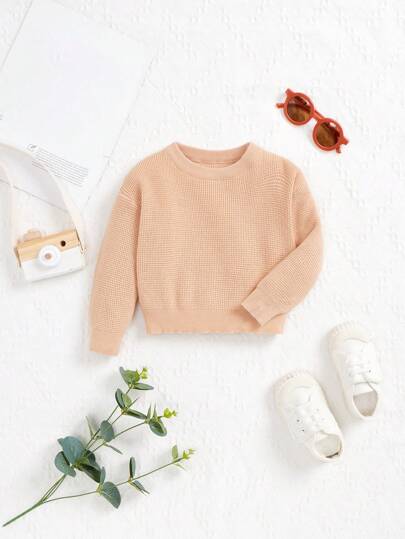 SHEIN 女嬰華夫格編織套頭毛衣 - 杏色 - 查看 1