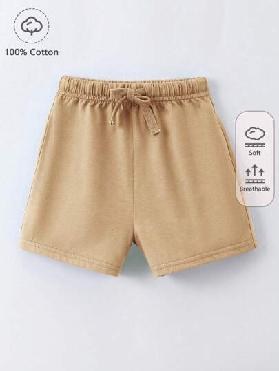 SHEIN 嬰兒實色束腰短褲 - 杏色 - 查看 1