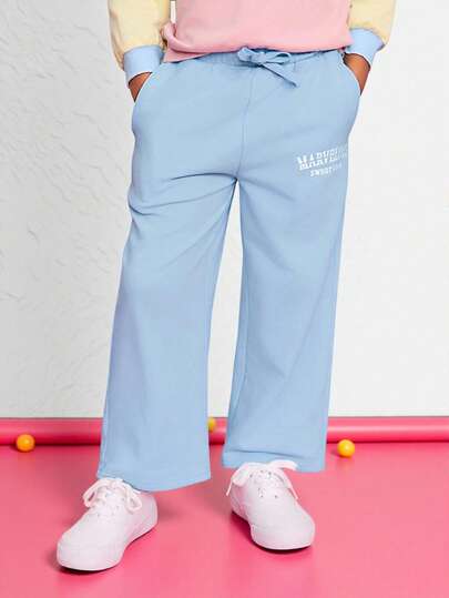 SHEIN 年轻女孩休闲舒适中腰侧袋裤 - 藍色 - 查看 1