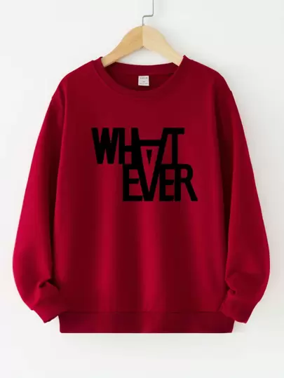 SHEIN 男孩1入組字母圖案運動衫 - 酒紅色 - 查看 1