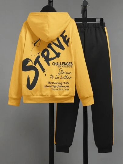 SHEIN 男孩標語圖案連帽衫和運動褲套裝