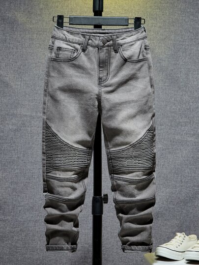 SHEIN 男孩拉鏈門襟拼接面牛仔褲 - 灰色 - 查看 1