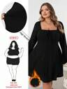 SHEIN CURVE+ 大码女式立领长袖渐变色系带百搭时尚休闲连衣裙,适合日常通勤和休闲穿着