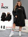 SHEIN CURVE+ 2 件大码女式休闲 V 领宽松运动衫套装,黑白基本款套头衫,适合秋冬季