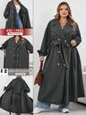 SHEIN CURVE+ 大码女式纯色优雅修身百褶黑色半身裙