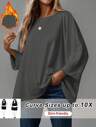 SHEIN CURVE+ Curves 大码/学校服装/返校服装/返校大码女式休闲简约黑色 V 领宽松运动衫,适合秋冬季大码运动衫大码运动衫女式黑色运动衫 V 领运动衫大码上衣秋冬