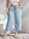 SHEIN CURVE+ 大码夏季休闲水洗褶皱牛仔裙