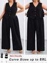 SHEIN CURVE+ 加大码纯色短款上衣和高开叉下摆半身裙两件套,节日时尚