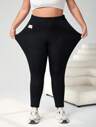 SHEIN CURVE+ Curves 大码/学校服装/返校服装/返校大码女式高腰黑色阔腿纹理休闲裤,百搭办公室服装