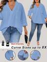 SHEIN CURVE+ 适合春夏日常休闲度假的大码,搭配干净的颜色,绿色卷边短袖交叉衬衫领,编织腰带,超长阔腿裤,编织纹理面料,女士大码超长连体裤女士沙滩装/沙滩裙/沙滩度假装/沙滩必需品/毕业/茶会礼服夏季/乡村/海滩度假装/沙滩装/沙滩装