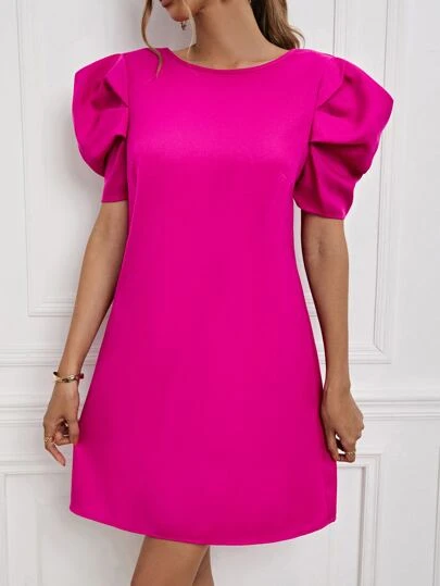 SHEIN Clasi 素色泡泡袖連衣裙 - 玫紅色 - 查看 1