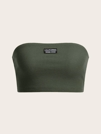 SHEIN EZwear 字母貼布抹胸上衣 - 軍綠色 - 查看 1