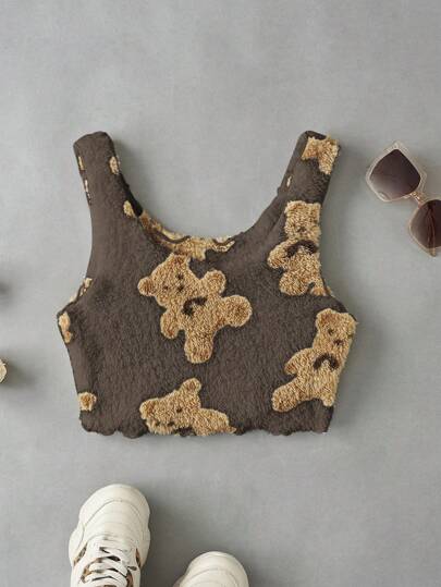 SHEIN EZwear 小熊印花木耳邊背心上衣