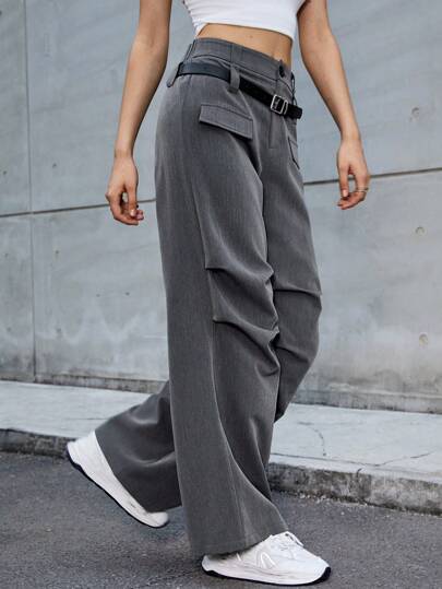 SHEIN EZwear 深灰色編織女士西裝褲 - 灰色 - 查看 1