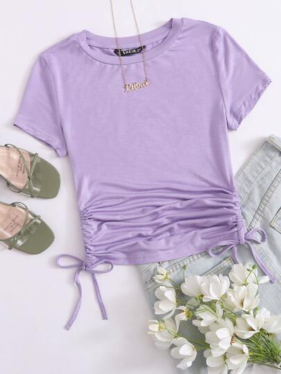 SHEIN EZwear 側抽繩素色t恤 - 紫丁香色 - 查看 1