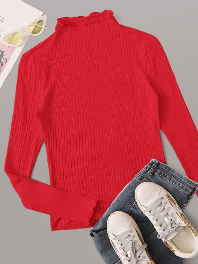 Muchica 生菜邊羅紋針織t恤 - 紅色 - 查看 2