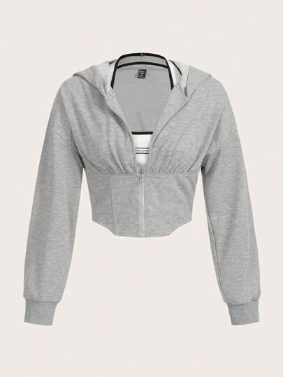 SHEIN EZwear 大码落肩拉链卫衣 - 淺灰色 - 查看 1